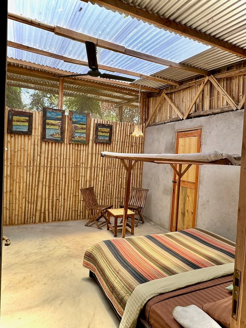 The location is just fantastic and filled with animals as the river is nearby and gorgeous trees all around hosting many monkeys, bush babies and the best music-making birds. The lodge is great for organizing all your safari activities like game drives, boat trips and the walking hike into the bush. The food is absolutely exceptional and a perfect experience to have it on the roof of the cottage in the company of the wilds… it’s been the best home cooking of all the places I’ve stayed.